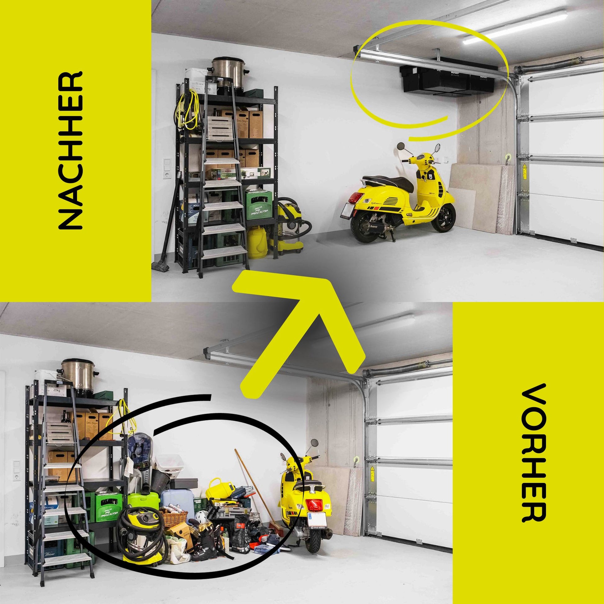 Verwandle deine Garage in einen ordentlichen, effizienten Raum. Nutze den Platz an der Decke und organisiere deine Garage neu!